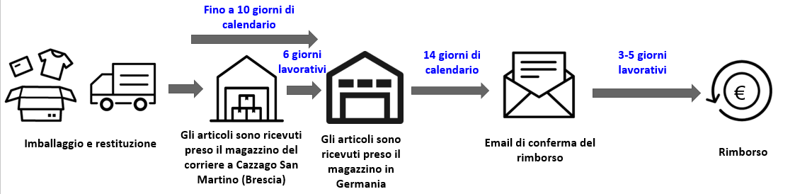 2. Una volta ricevuto l’articolo nel nostro magazzino in Germania, il rimborso verrà elaborato entro 14 giorni di calendario.